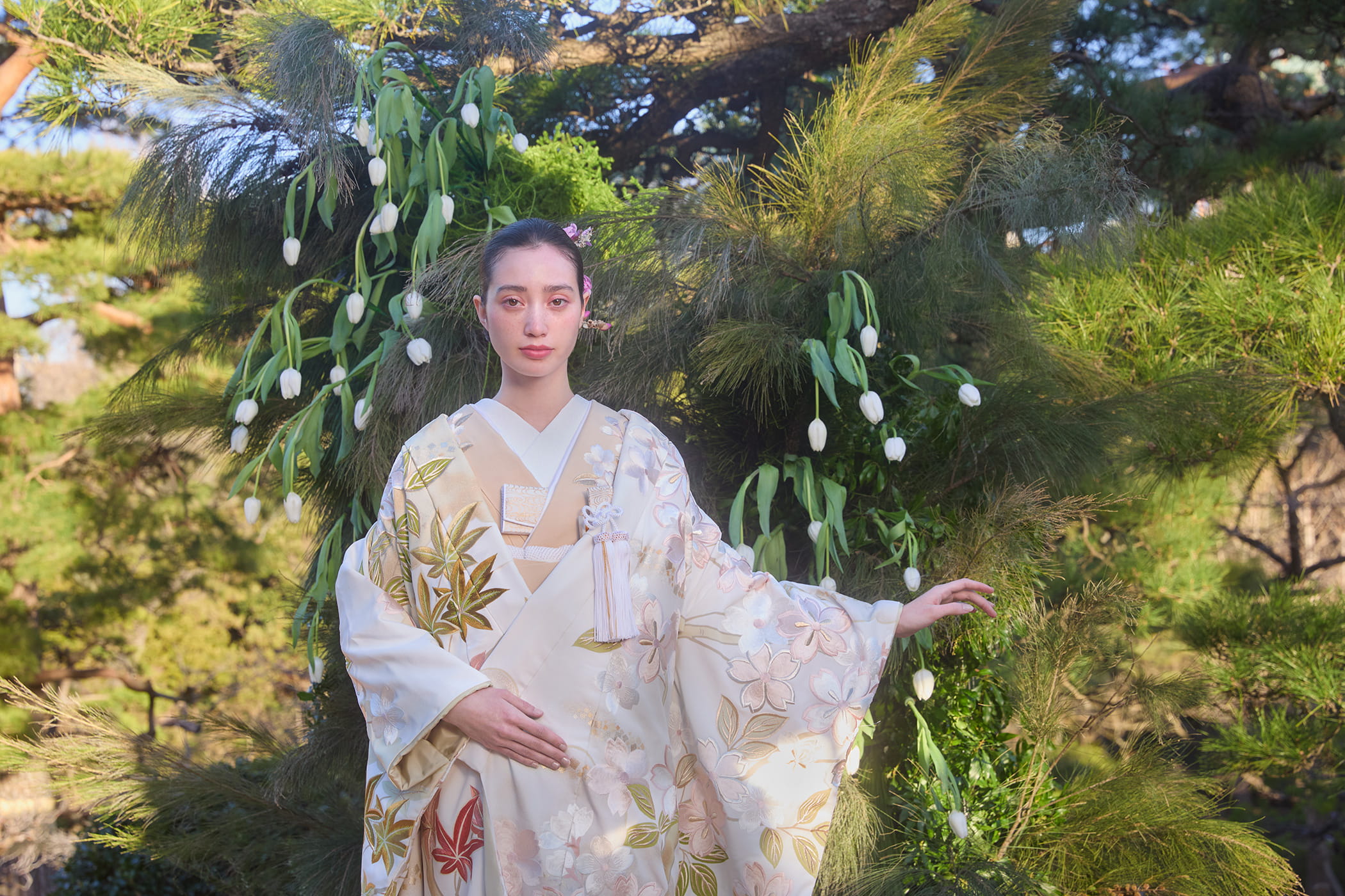 京都の老舗メーカーの職人と一から創り上げるオリジナル和装をはじめ、最上級のインポートドレスなど、ここでしか出逢うことのできない希少な衣裳を中心に、国内外から上質なブライダル衣裳をセレクトしています。八芳園自らがプロデュースした八芳園で挙式をされる皆さまのための衣裳を、THE HIGASHIYAMA CLUBでもご着用いただけます。
