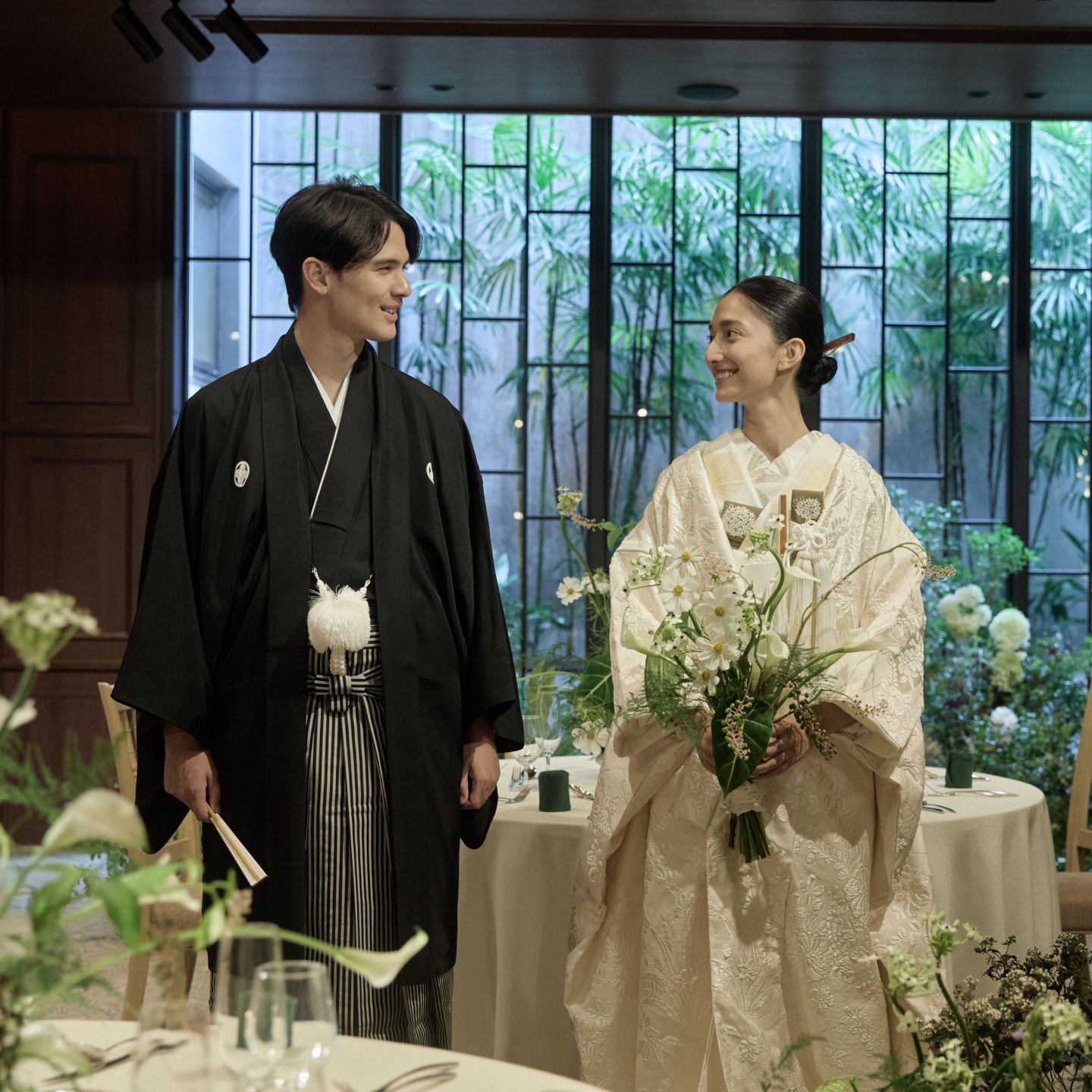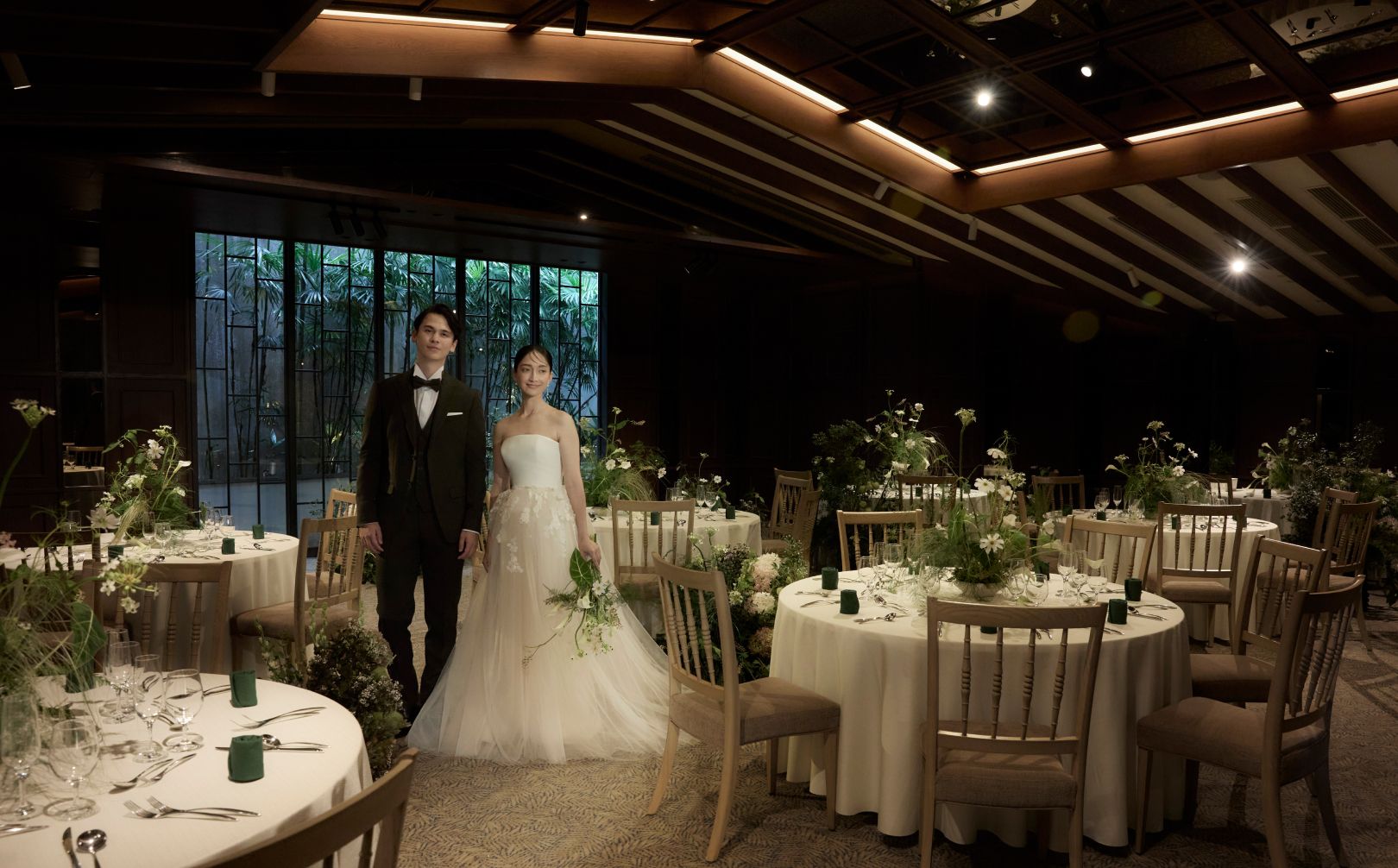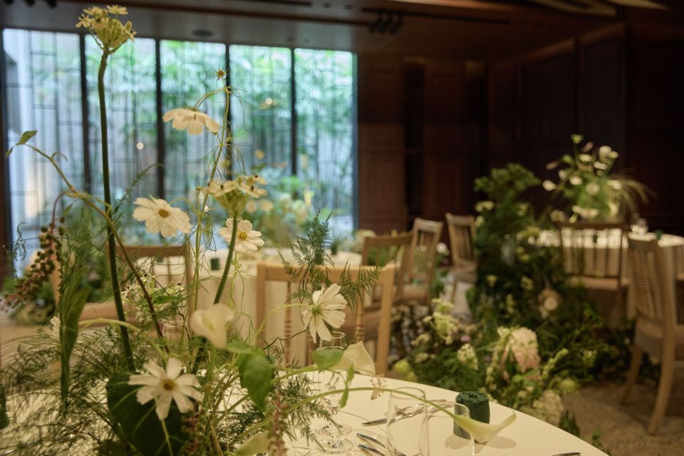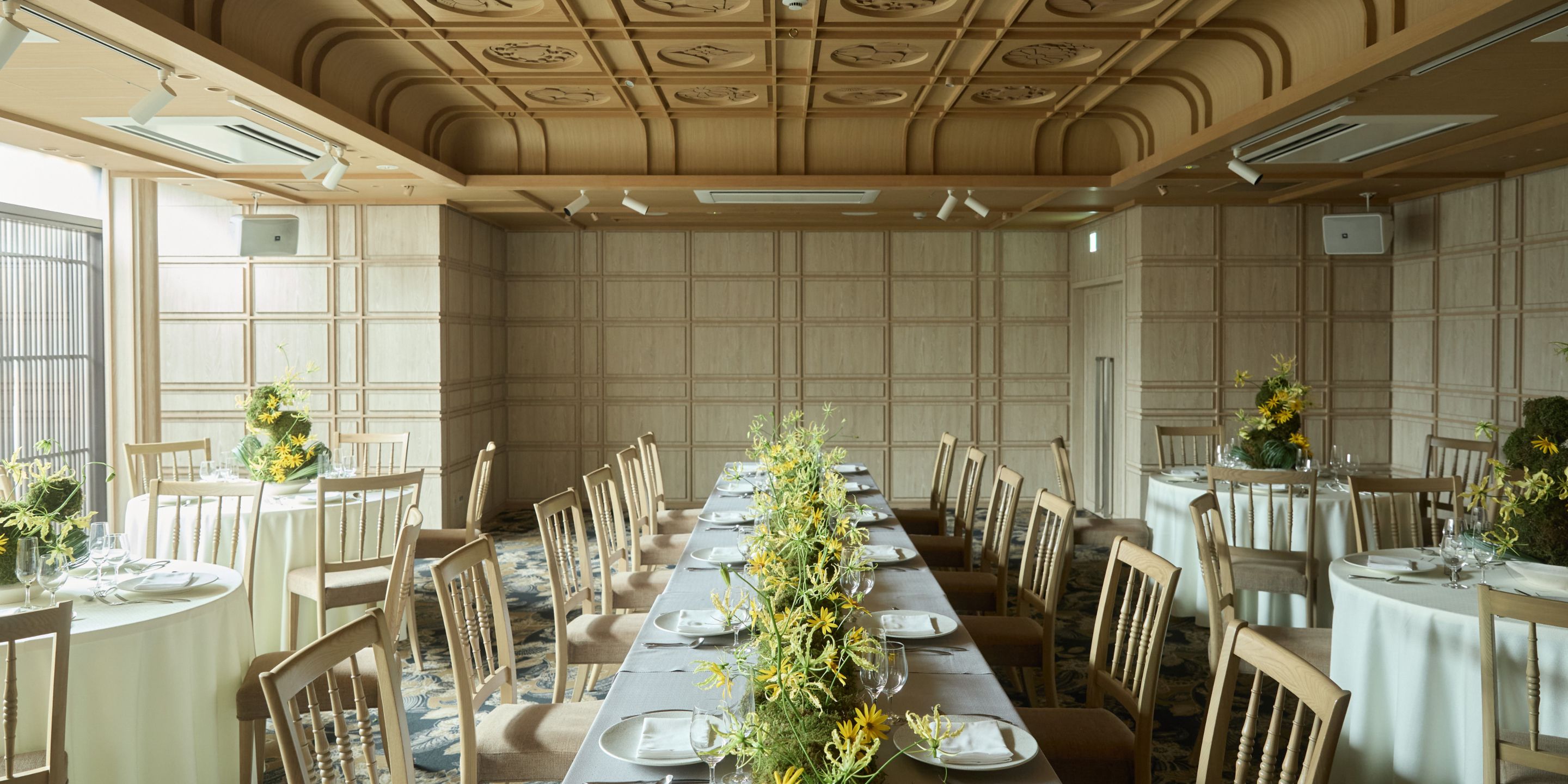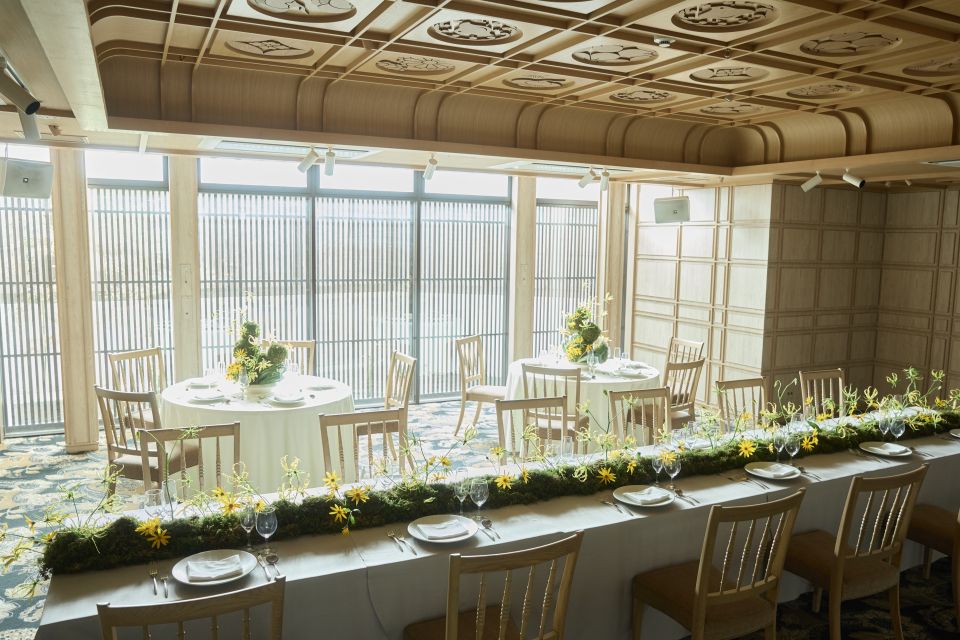 自然光が柔らかくおふたりを包み込み、和も洋も楽しめるスタイリッシュなバンケット。