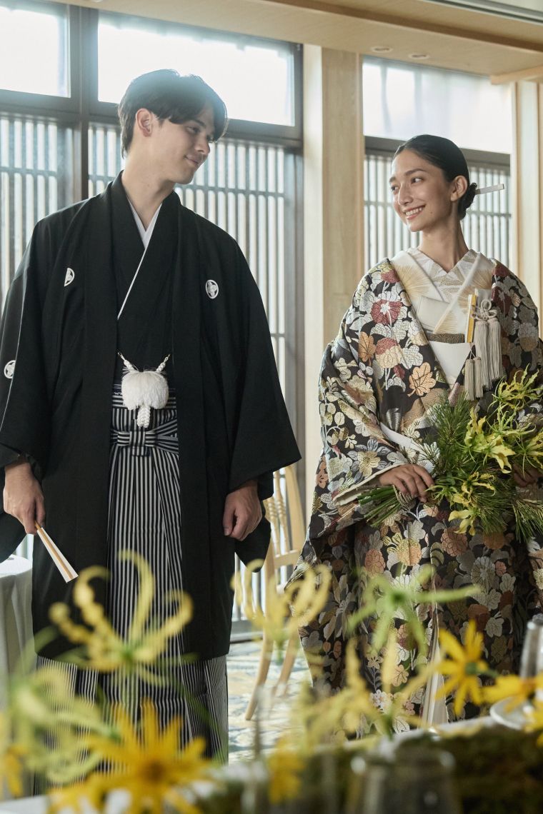 日本家屋をイメージした天井からの装飾も可能。おふたりらしさを自由に表現して。