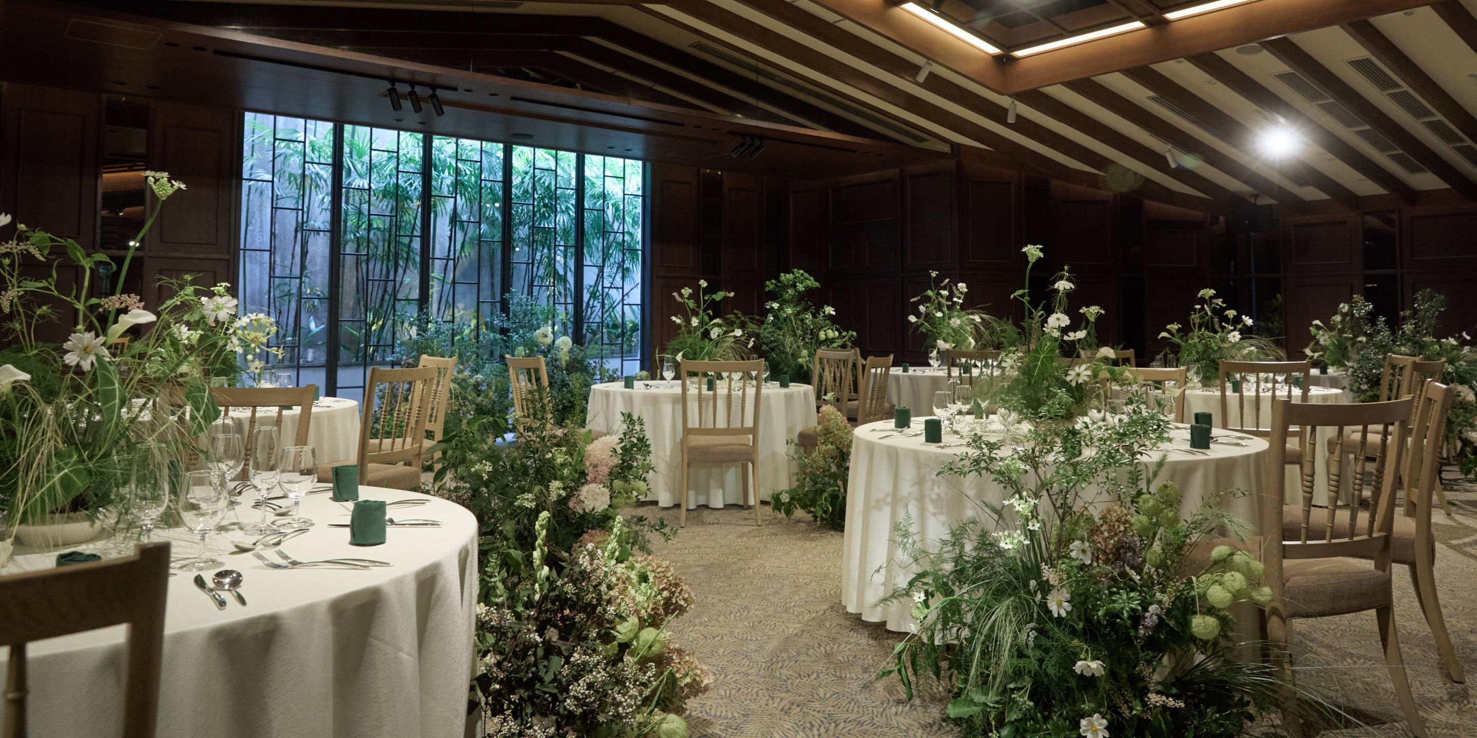 落ち着いた木のぬくもりと、重厚感を感じる上質な大人のバンケット。