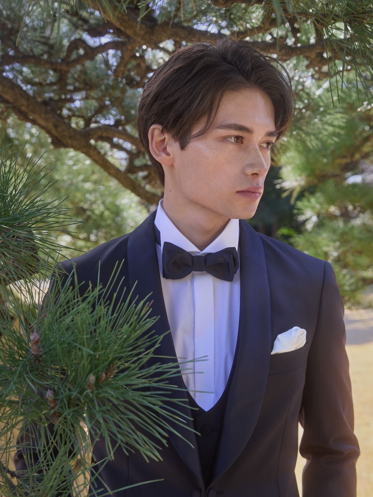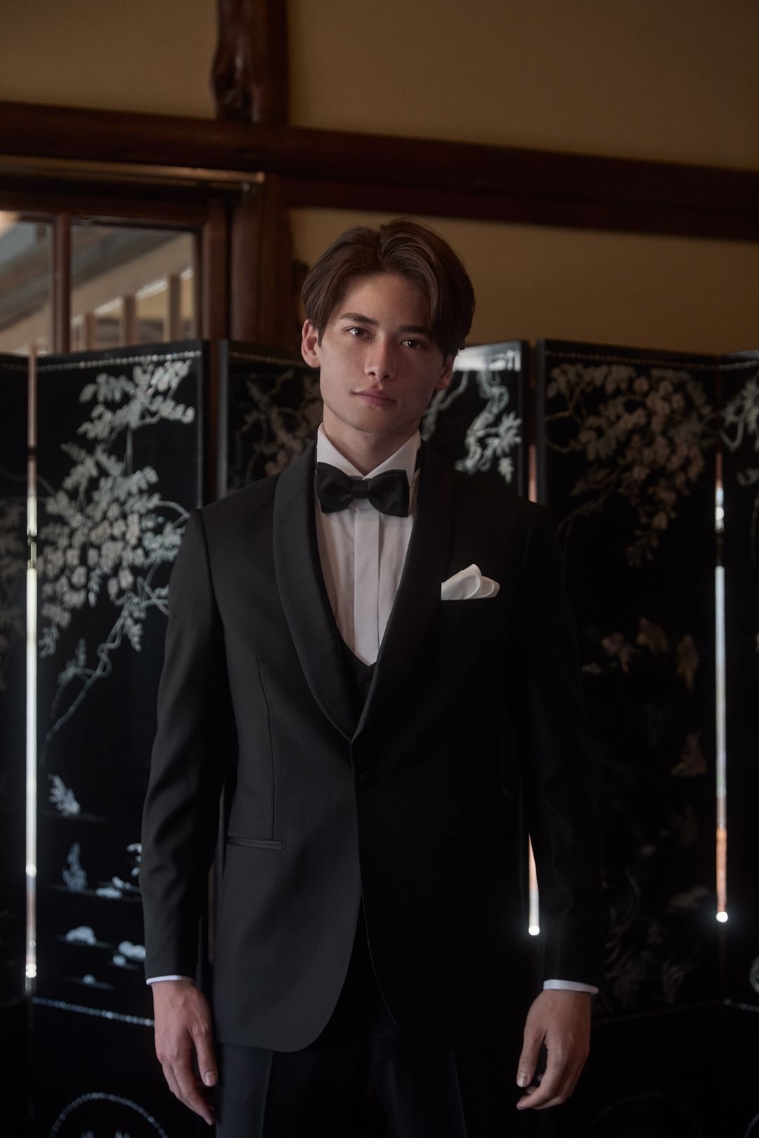 イタリアの上質な生地を贅沢に用いた格式高いタキシードや、八芳園の美意識を落とし込んだインフォーマルなお衣裳をご用意しております。